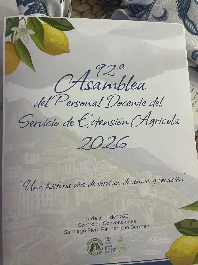 Bajo el lema Una historia viva de servicio, docencia y vocación, el Servicio de Extensión Agrícola (SEA), adscrito al Colegio de Ciencias Agrícolas del Recinto Universitario de Mayagüez (RUM) de la Universidad de Puerto Rico (UPR), celebró ayer su Asamblea del Personal Docente en el Centro de Convenciones Santiago Riera Palmer, en San Germán. En este […]