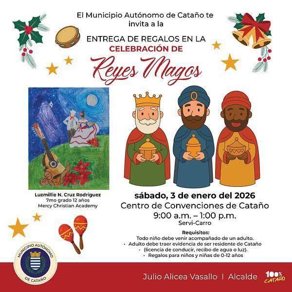 El Municipio de Cataño celebrará mañana sábado, 3 de enero, la tradicional entrega de regalos con motivo del Día de Reyes Magos, una actividad diseñada para ofrecer a las familias catañesas una experiencia organizada, segura y centrada en el bienestar de la niñez.