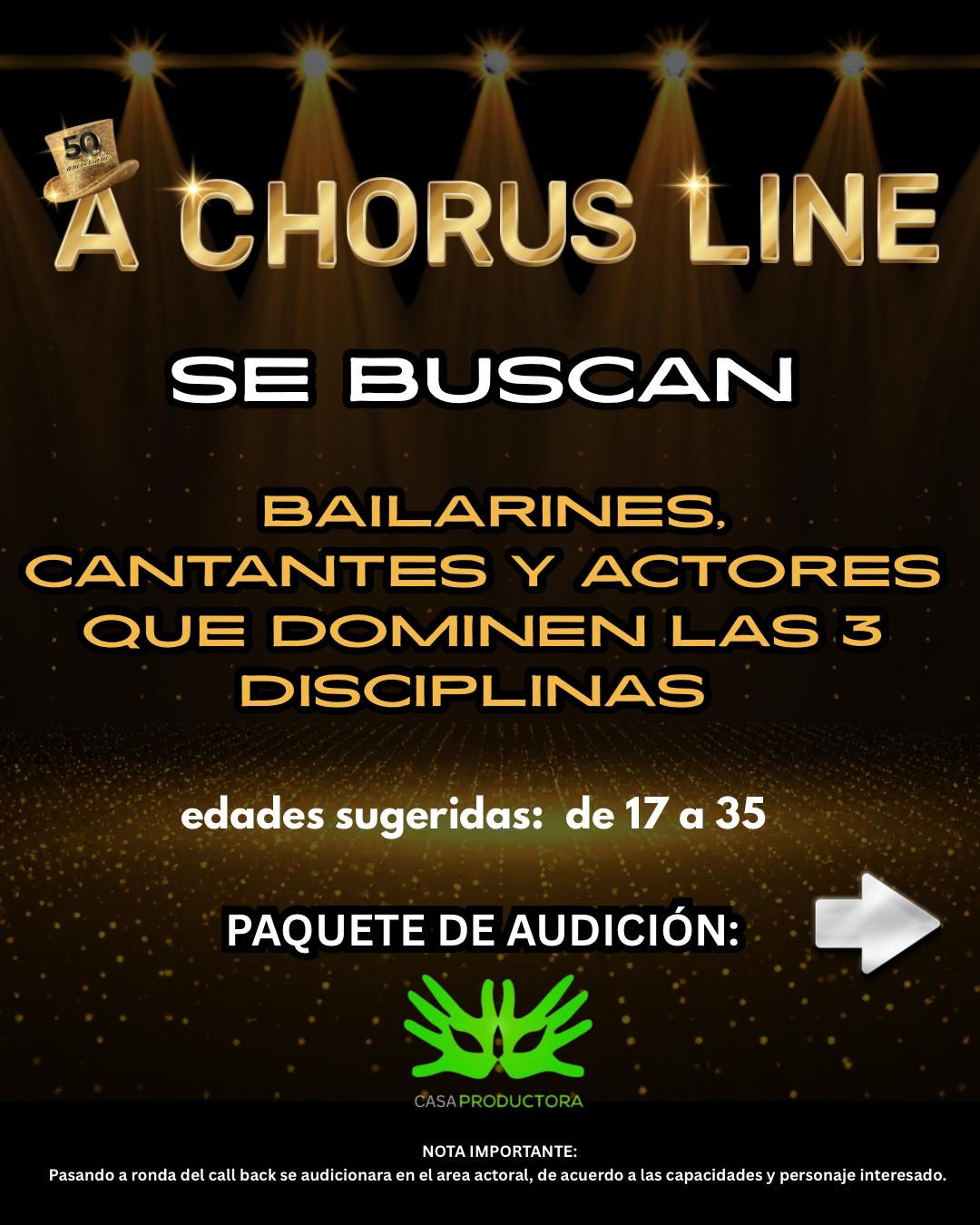 La compañía Casa Productora anuncia audiciones para el reconocido musical Chorus Line que se presentará en el mes de octubre en el Centro de Bellas Artes de Santurce.  La audición se llevará a cabo el sábado 21 de febrero en el Centro de Bellas Artes Luis A. Ferré, el registro será de 9:30 am a 10 am.