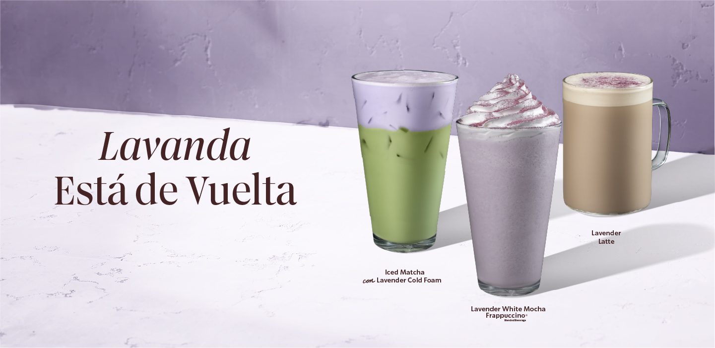 La primavera también trae de regreso bebidas que los clientes esperan disfrutar cada año, como la familia Lavanda. La variedad de temporada combina las delicadas notas florales con matcha o white mocha, creando una experiencia ligera y aromática en presentaciones como Lavender White Mocha Frappuccino® Blended Beverage y el Lavender Latte.