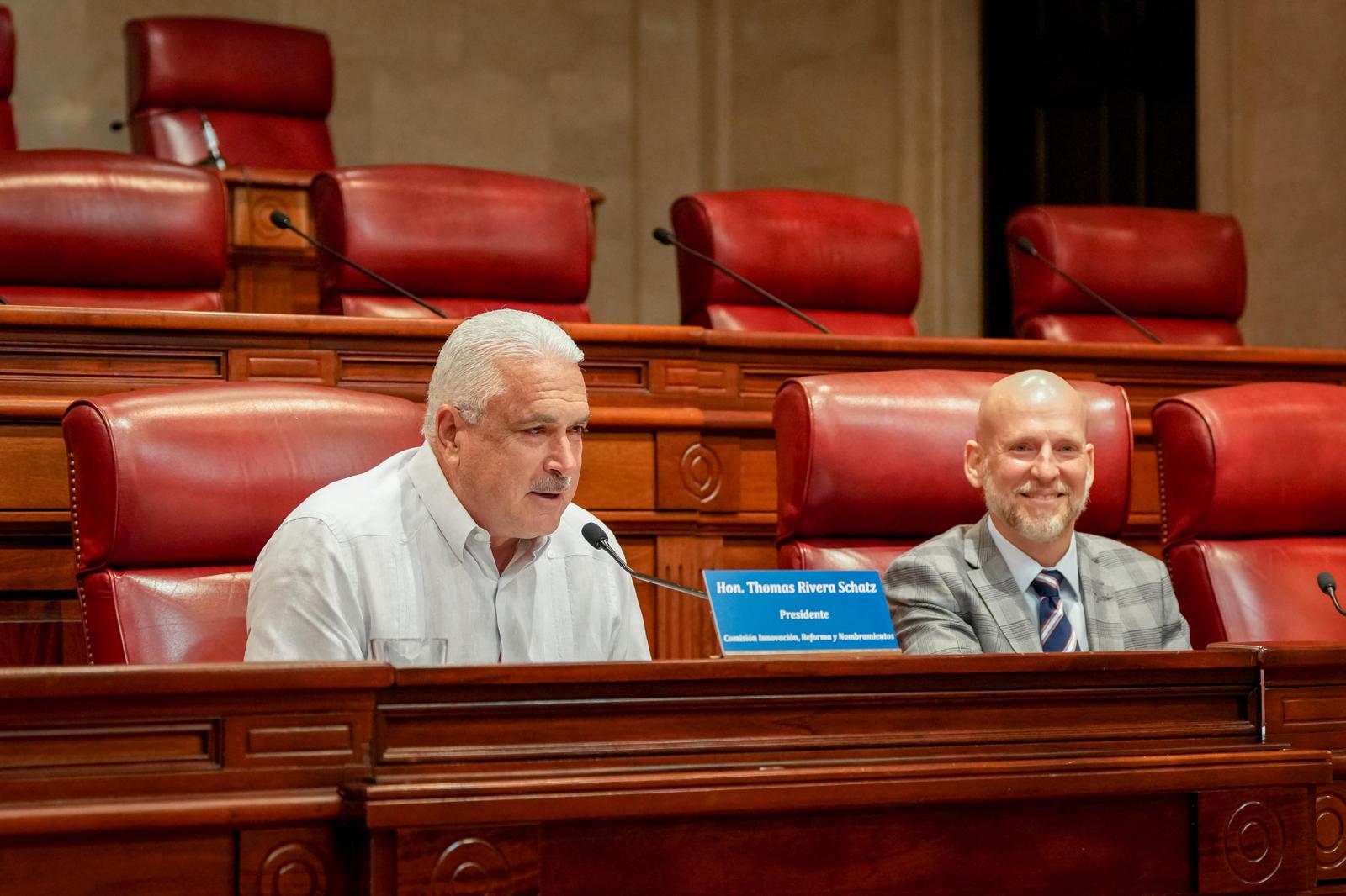 La Comisión de Innovación, Reforma y Nombramientos, presidida por el presidente del Senado, Thomas Rivera Schatz, celebró una vista pública para evaluar a tres licenciados nominados por la gobernadora al cargo de Fiscal Auxiliar I en el Departamento de Justicia.