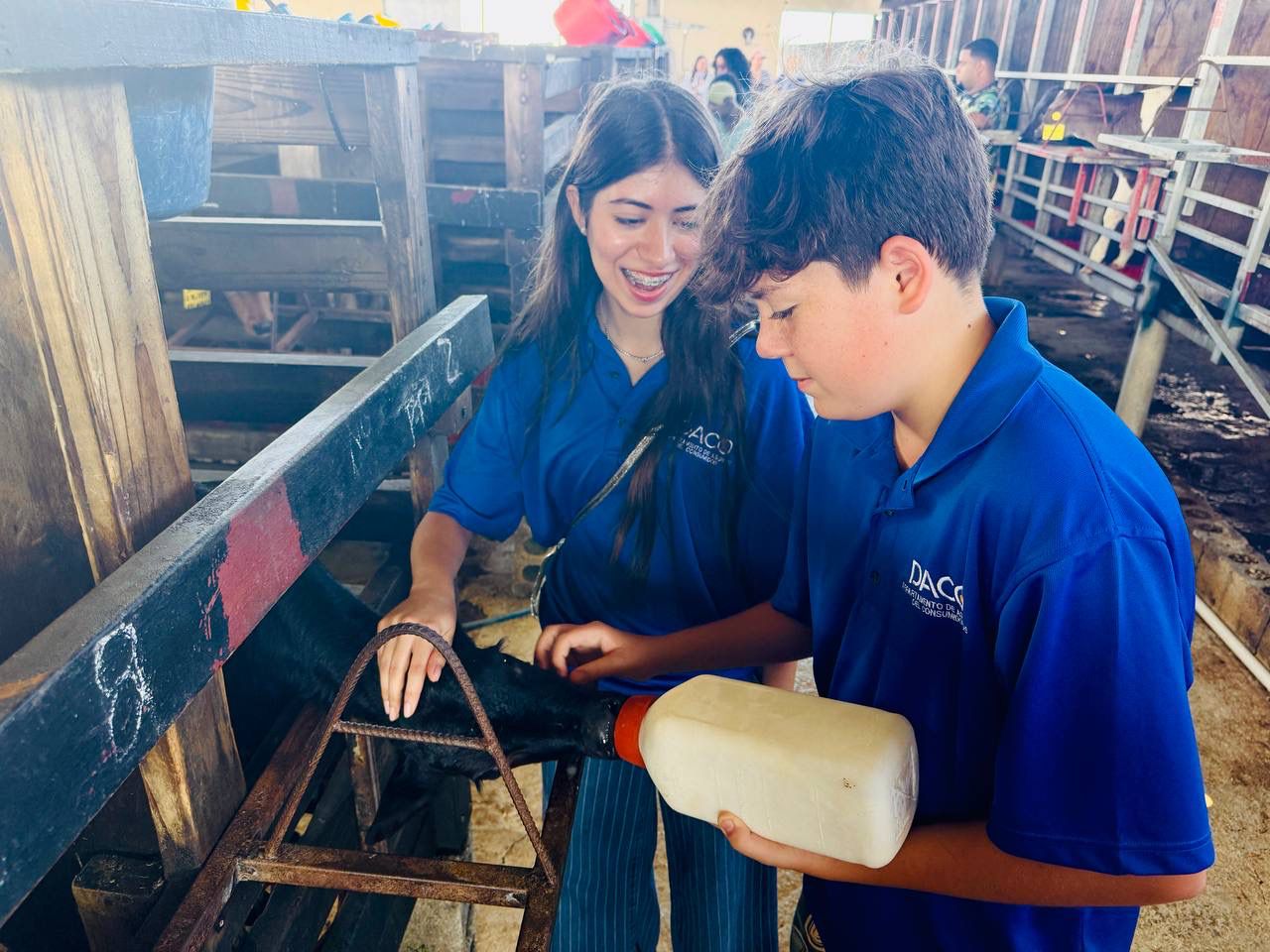 El cuerpo de Inspectores Juveniles del DACO, compuesto por 30 estudiantes entre las edades de 10 a 18 años, recorrió las instalaciones de la vaquería, incluyendo las áreas de ordeño y procesamiento, donde observaron de primera mano los procedimientos que garantizan la calidad y seguridad del producto. Durante la visita, personal técnico ofreció una orientación sobre el estado de la industria lechera en Puerto Rico, la cual genera sobre $500 millones anuales a la economía local.