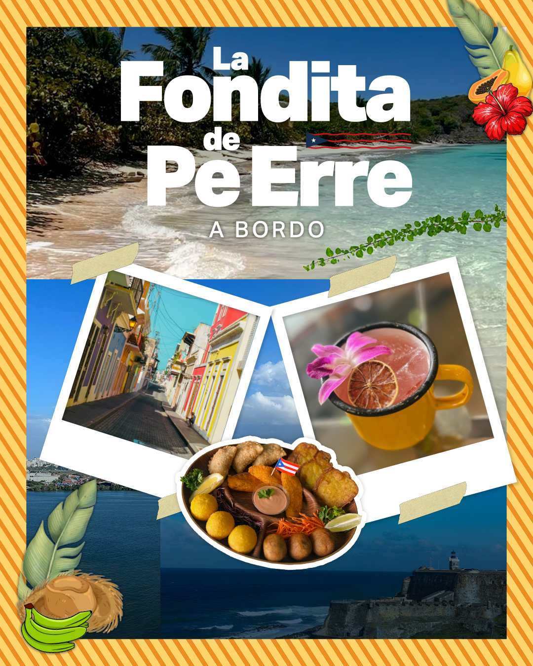 La Fondita de PeErre está inspirada en los platos típicos de Puerto Rico confeccionados con productos locales y la coctelería creada por el mixólogo de la marca local Bravada. Como parte de la iniciativa se traerá el sabor de los Kioscos con el plato de frituritas La Esquina de Piñones y para acompañarlo los cócteles de la temporada como la Amapola, Frente a las Olas, Besito de coco y Desvelo Isleño, la receta del Espresso Martino , para los amantes del café y los que quieren seguir disfrutando de la fiesta.