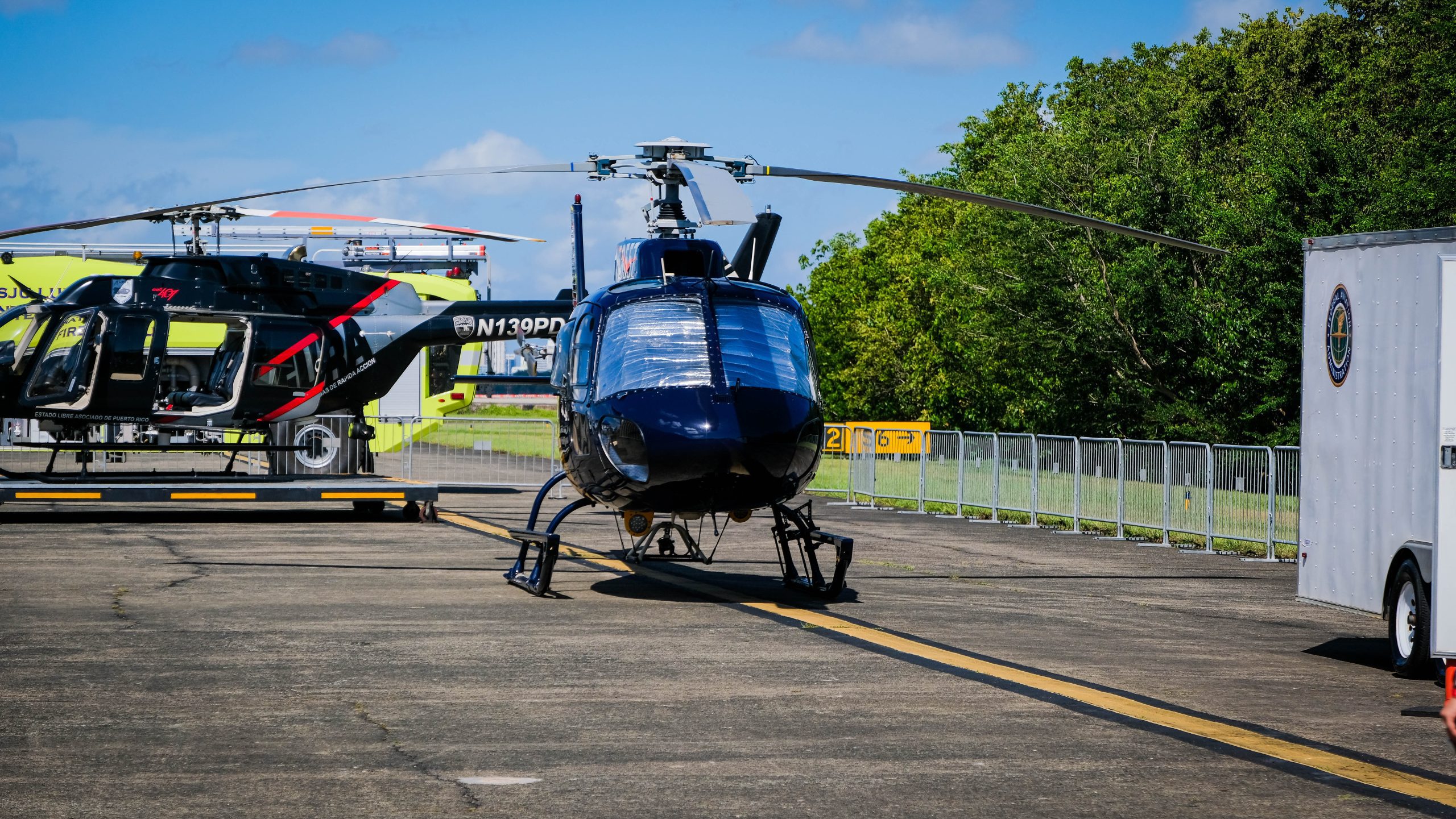 El equipo de aviación de LUMA formó parte de la exhibición, presentando uno de sus helicópteros utilizados en labores esenciales para la inspección, mantenimiento y modernización del sistema eléctrico de la Isla.