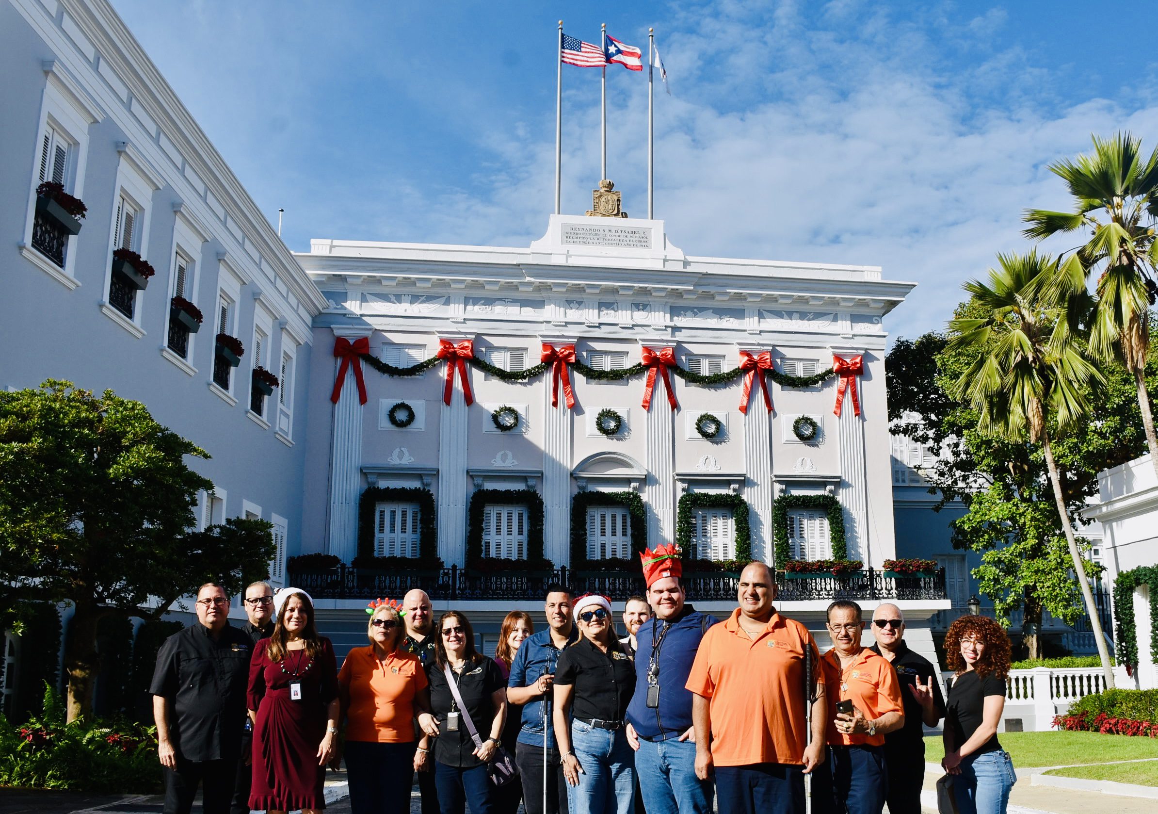 La jornada culminó con la tercera visita guiada inclusiva a La Fortaleza, donde la administradora de la ARV, doctora Rosa H. Lugo Cabán acompañó junto a su equipo de trabajo a personas con diversidad funcional visual y de autismo para recorrer en la mañana del miércoles, los salones oficiales del segundo piso de la Mansión Ejecutiva, viviendo una experiencia de acceso, pertenencia y reconocimiento en uno de los espacios más emblemáticos del quehacer gubernamental. Al concluir el recorrido, músicos y cantantes del Programa de Industria de Ciegos de la ARV ofrecieron interpretaciones musicales desde la entrada a La Fortaleza que deleitaron al personal y visitantes, destacando el talento y la disciplina artística de esta población. Esta jornada continuó con la visita al nacimiento vicentino en la Casa de las Siervas de María, donde también se llevó una emotiva cantata a los pacientes de la casa de salud, compartiendo música, esperanza y cercanía.